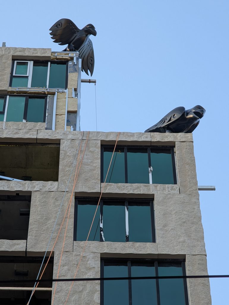 You can see a lovely detail at the tops: Raven statues!